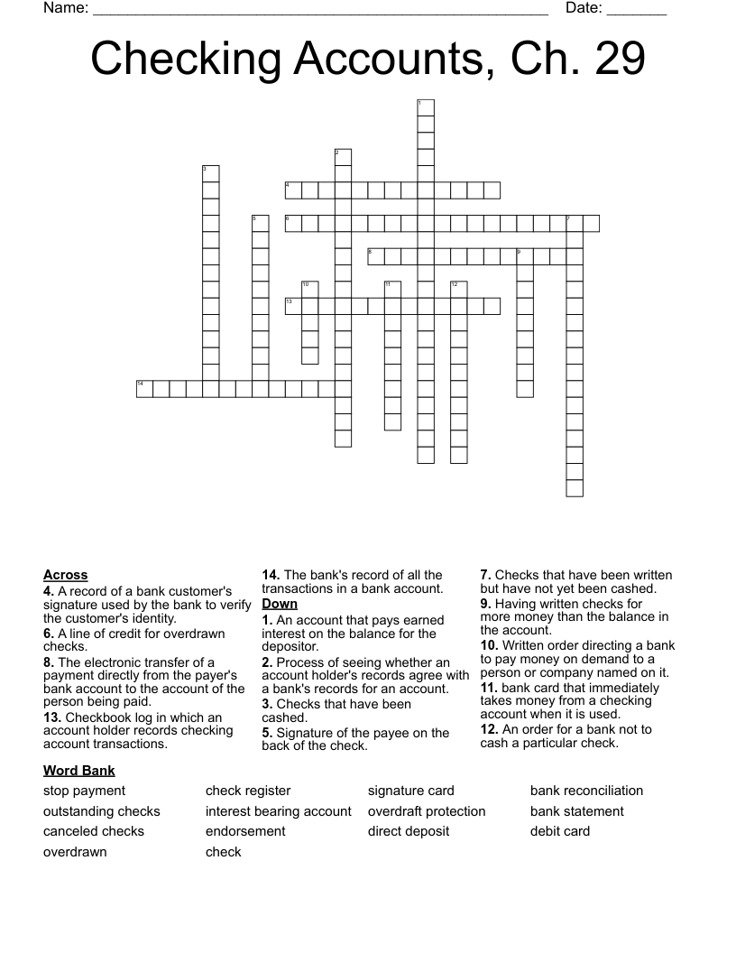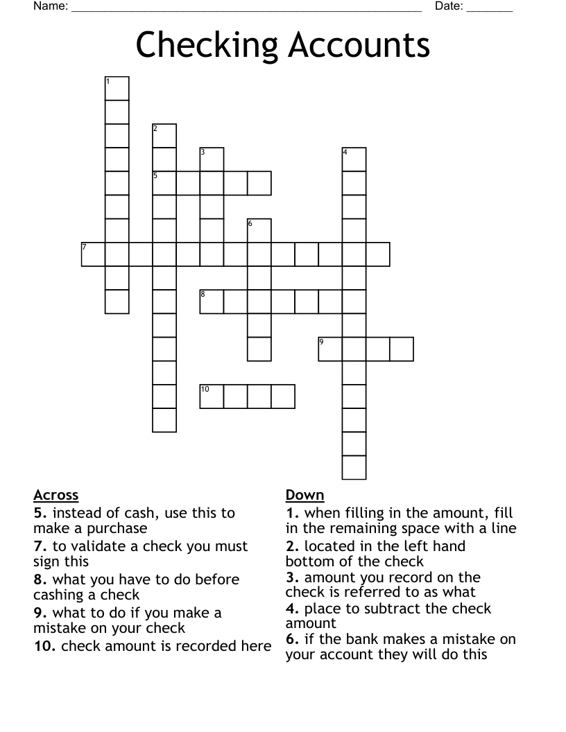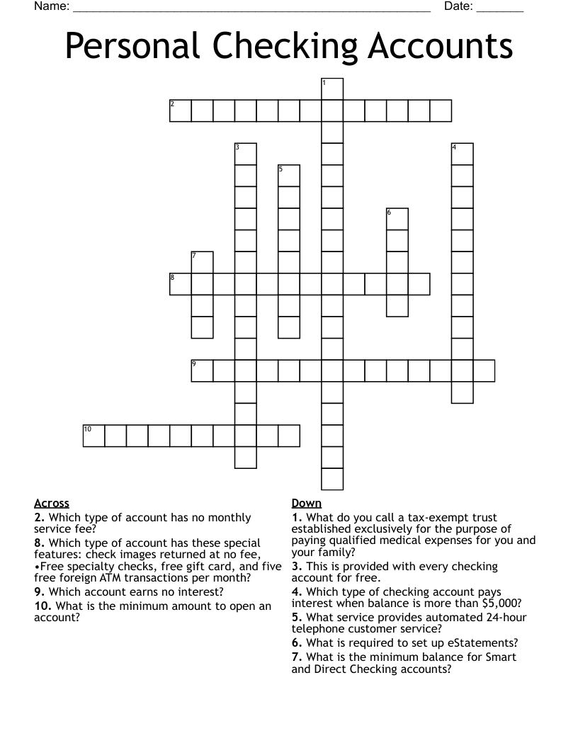 Personal Checking Accounts Crossword Wordmint ... | 816x1083 px
